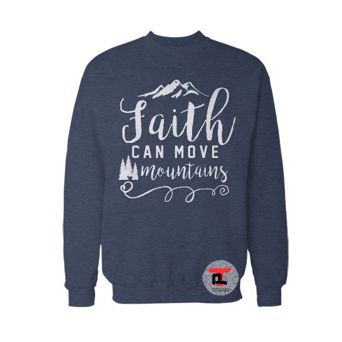 Faith Can Move Mountains Sweatshirt. A sturdy and warm sweatshirt bound to keep you warm in the colder months. A pre-shrunk, classic fit sweater that’s made with air-jet spun yarn for a soft feel