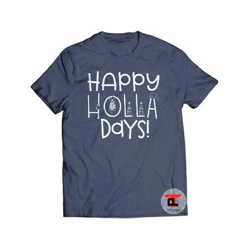 Happy HOLLA Days Shirt, made of 100% cotton (except for heather colors, which contain polyester). Comes pre-shrunk so the fit stays the same over time and multiple wash cycles.