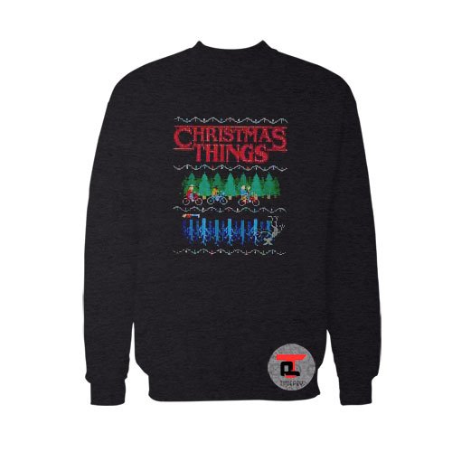 Stranger Things Christmas Things Ugly Christmas Sweatshirt. A sturdy and warm sweatshirt bound to keep you warm in the colder months. A pre-shrunk, classic fit sweater that’s made with air-jet spun yarn for a soft feel