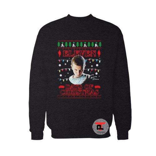 Stranger Things Eleven Days of Christmas Ugly Christmas Sweatshirt. A sturdy and warm sweatshirt bound to keep you warm in the colder months. A pre-shrunk, classic fit sweater that’s made with air-jet spun yarn for a soft feel